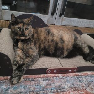 She is shy and can be skittish. She is also slightly chubby and tortes colored.