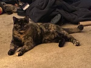 Millie is a friendly one-eyed tortie. She might come if you call her. She is microchipped