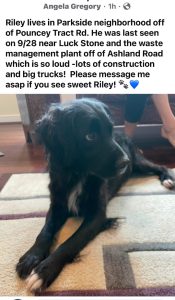 Riley is a 2 year old black spaniel and collie mix. He is black with a little white on his chest and on two of his paws. He is very skittish do not chase. He was last seen off of Ashland Road near Luckstone and the waste management plant and the tractor supply store. Goochland / Henrico / Hanover line.