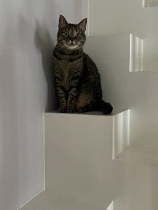 Sophie is a skittish female cat with big yellow eyes, and a grey tabby pattern. She meows a lot when she is not too scared. We have had her since she was 2 months old, we just want our baby back no questions asked.