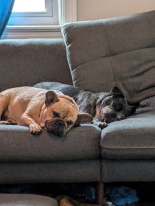 Friendly stocky bulldog. Should respond to laz or lazlo