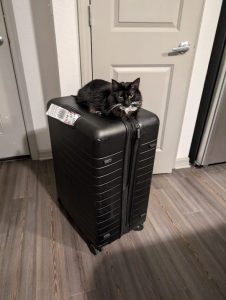 Saffron is a medium/long haired indoor cat. She is pretty shy and has never been outside before, so she may be hiding somewhere. She usually responds to her name and her favorite treat is Churu, so we have been trying to call her and leave treats out for her around the apartment building.