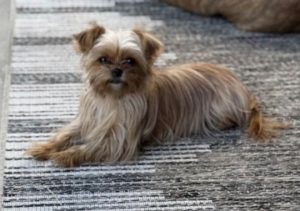 Shirt under 1” about 4-5 lbs with Long straight sliky tan & white highlights hair. Green tattoo mark on belly