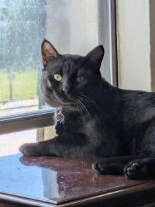 That cat skinny and very friendly, very curious and playful. Has a collar and a blue tag/medallion with his hospital and vaccinations information