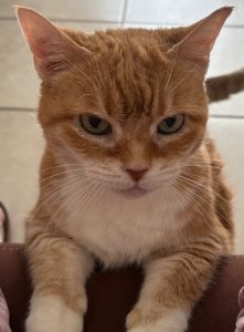 Scarlett is an indoors 10+ years female cat. Golden Brown & white color.