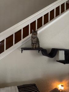 He’s a loving but skittish cat. He’s also either very quiet or screams when he meows. He’s a very slim build and smaller cat. Looks like a kitten still. His tall is slightly longer than average and has a longer black section that’s about 2ish inches long. He got out when our garage door didn’t latch correctly. He might not come to strangers even with food and only seen during quiet hours. He’s chipped and did have his blue collar with a bell on when he got out. If you’re anywhere near Little Rock Lane 76120 zip code please check your yards or any place that might be able to hide a scared cat.