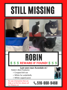 White belly tuxedo type white paws more white on one back leg, left tip of ear trimmed