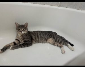 Very small sweet kitty. Greenish yellow eyes. Only a year an 3 months old we have had her since she was a kitten.