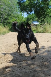 Breed: Husky and blue heeler Color: Brown but mainly black with blue eyes