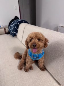 Murphy is 13 lb male mini Goldendoodle. He is friendly to dogs and people but is sometimes a little nervous. He currently lives just outside of Manhattan in Queens but is visiting Odenton just outside of DC for the weekend. He was last seen around 7pm after he escaped the front door. Currently he is wearing a gray Kirkland hoodie. Please call or message 8584372215 if seen at all. Greatly appreciated. Jiaqi and Eric
