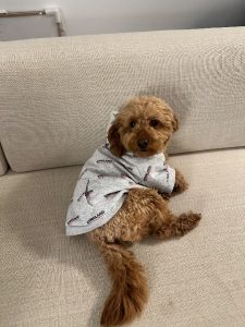 Murphy is a brown 13 lb mini Goldendoodle. He’s visiting Odenton for the weekend so not familiar with area. He escaped from the front door around 7pm on 02/06 and was spotted in the woods and around Piney Orchard Elementary. Last unconfirmed spotting was 02/07 around the ice rink. He was wearing a gray Kirkland hoodie when he escaped.