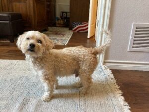 Male Maltese/poodle mostly white with some brown in coat