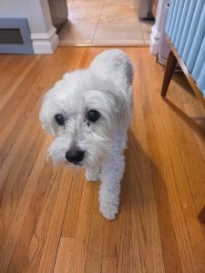 White Coton De Tulear. Male. 14 years old. No tags but chipped.